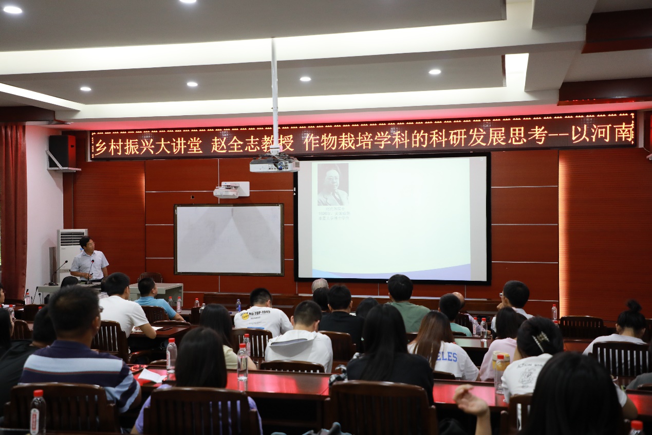 报告会上,刘耀光院士以“粮食安全与生物技术育种”为主题,介绍了我国的粮食安全存在的隐患及农作物育种技术的发展方向;邹应斌教授以“转型期多熟制作物生产面临的机遇与挑战”为主题,讲述了在新形势下作物发展的新机遇及多熟制作物与规模化生产面临的挑战,介绍了适应多熟制作物发展的新技术;于秋海教授以“东北花生高效生产的限制因素及其技术调控”为题,给大家讲解影响东北花生高产优质高效的关键因素及提高花生品质与产量的新技术;陈庆山教授以“大豆全基因组导入系构建与应用”为主线,简明扼要讲述了大豆全基因组导入系在基因定位及其在育种中的应用;赵志全教授以“作物栽培学科的科研发展思考-以河南农业大学水稻团队为例”为题,总结了水稻研究领域领军人才培养的三个关键词“出国”“名师”“大台”和作物栽培科技创新的三大关键词“核心技术”、“社会影响”、“适应发展”,为年轻科研工作者创新发展提供了经验借鉴。