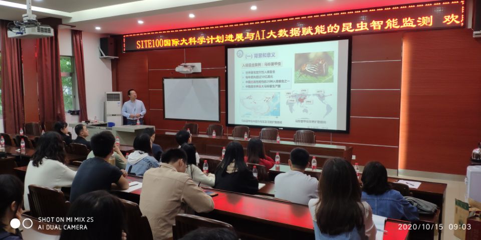 10月15日上午,中国科学院动物所白明研究员应邀来我校做题为《SITE100国际大科学计划进展与AI大数据赋能的昆虫智能检测》的学术报告,报告会由王国全教授主持。