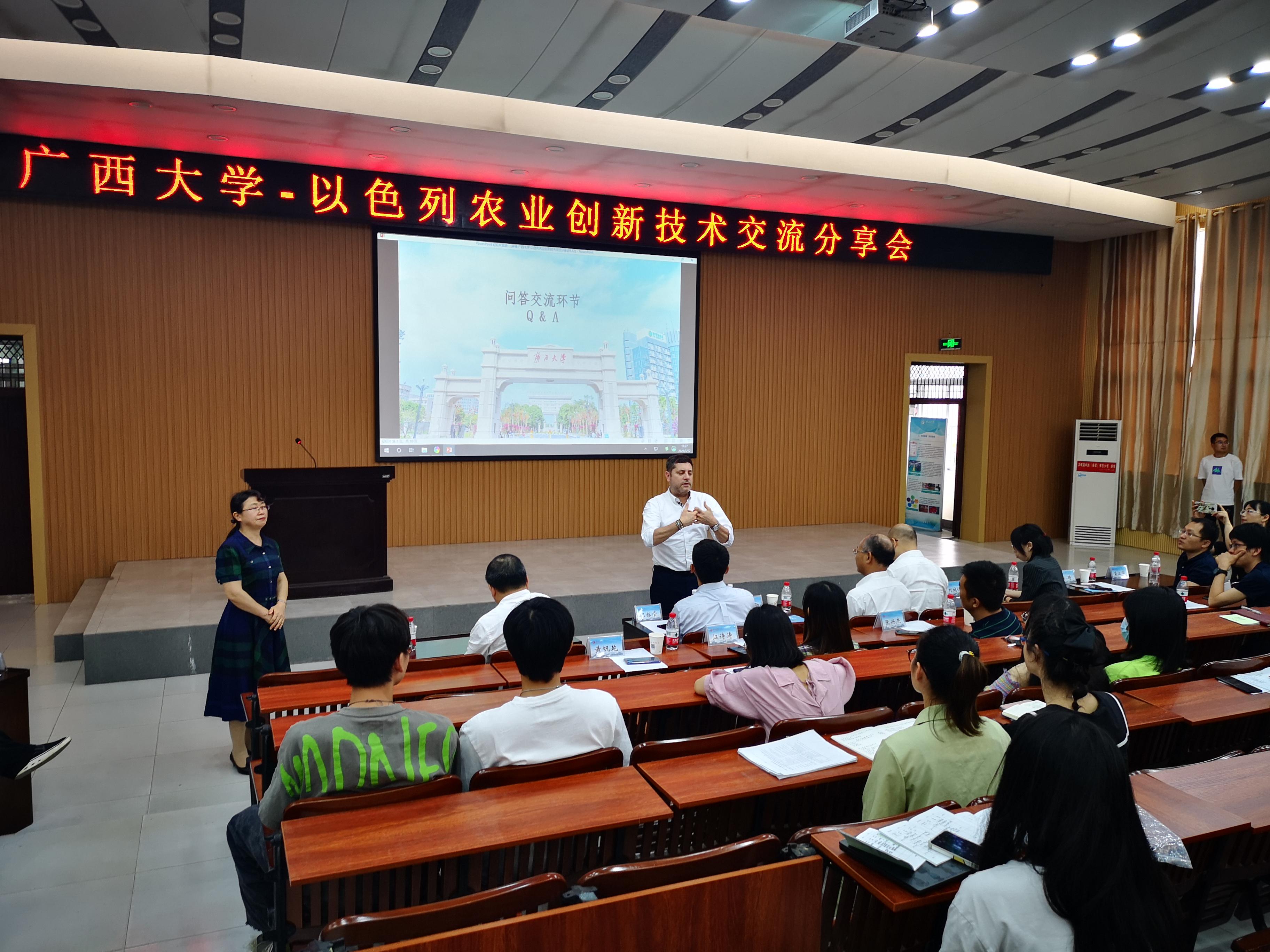 最后是问答交流环节,同学们踊跃参与,纷纷提出问题,来宾们一一解答,并表示希望通过此次交流会,广西大学-以色列在农业创新发展方面能有更多交流合作的机会。