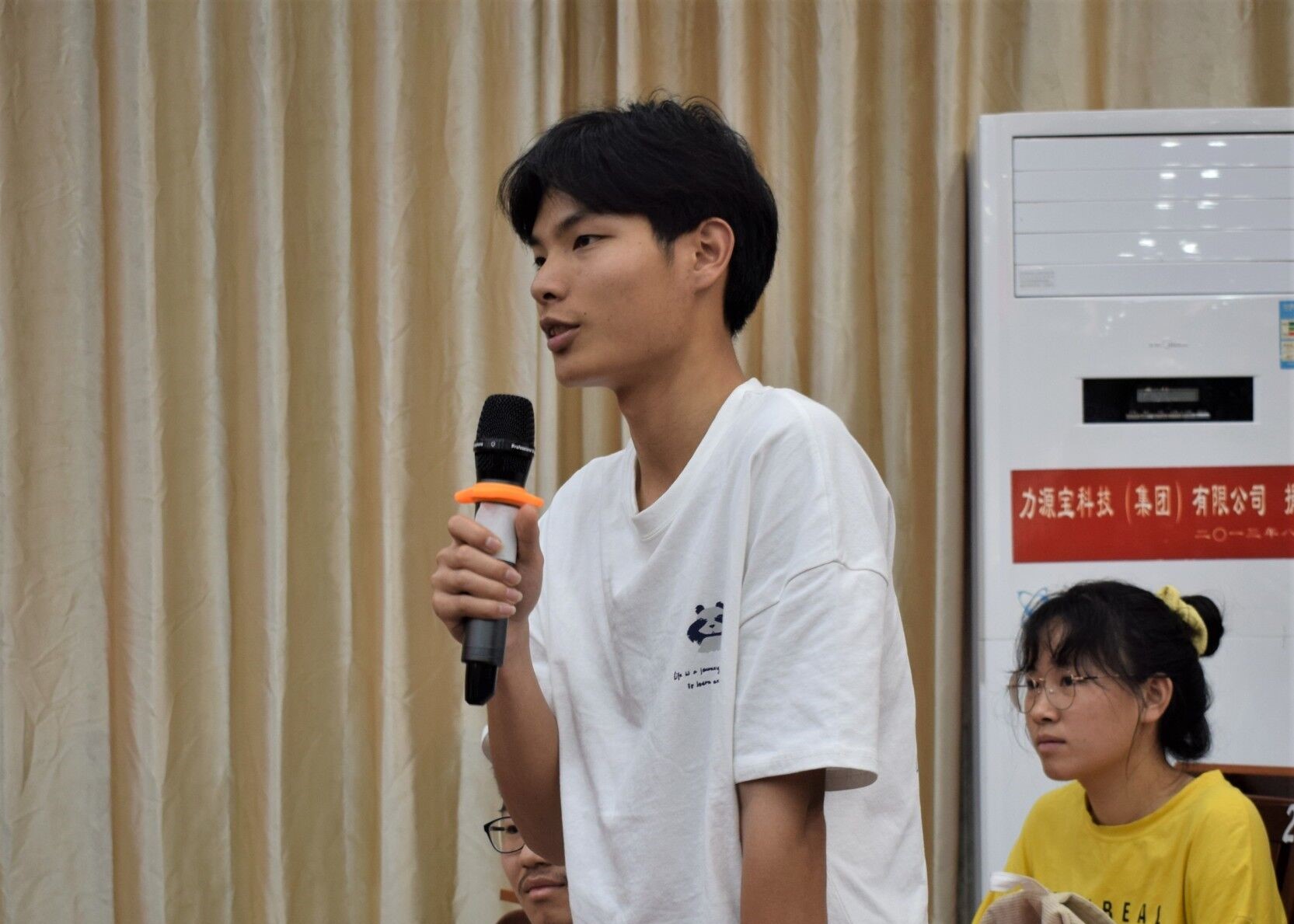随后,第六届“互联网+”国赛银奖获得者吴严严同学上台发言,他告诉同学们参赛可以增加人生阅历,可以提升沟通、协调、思维、眼界的能力,建议同学们尽量选择有技术的项目,组建优势互补的团队。黄福纲同学分享了参赛技巧,建议同学们要实事求是,打有准备的仗。黄治同学展示了项目的基本架构,并从团队合作、商业计划书撰写亮点和PPT路演技巧几个方面提出了建议。林光亮同学介绍了参赛制度与参赛政策,并将个人的一些参赛经验分享给了大家。在最后的答疑阶段,同学们纷纷向师兄提出问题后,获奖学生代表们对问题进行了一一解答,同学们受益匪浅。