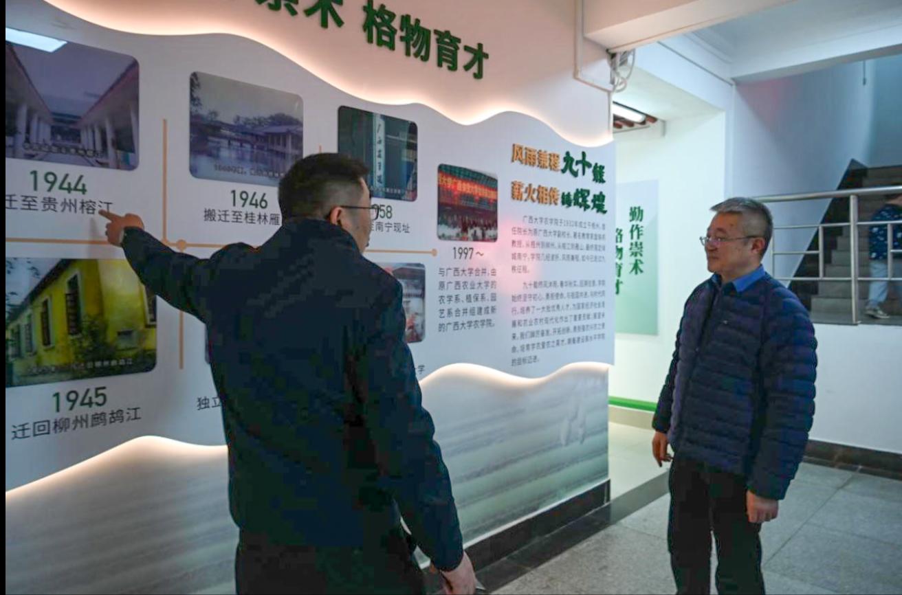 会后,广西大学副校长冯家勋和248cc永利集团书记张积森陪同韩斌院士参观了我校的校史馆、农学院、甘蔗生物育种研究中心以及韩斌院士曾工作学习过的场所。他们分别向韩斌院士简要介绍了我校的办学历史、以及近年来农学院改革发展的新举措和取得的成效。韩斌院士表示,作为248cc永利集团的校友,感到十分荣幸,并对母校的培养表示感谢。他愿意为母校农学学科的发展贡献自己的一份力量。