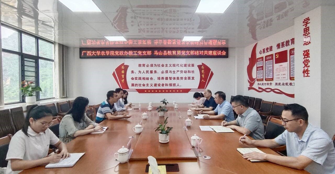 在座谈交流中,农学院与马山县达成合作共识,并对各自的发展需求与未来的合作内容进行了初步交流。双方表示,支部共建只是第一步,今后如何扎实落实合作,如何利用党建引领人才培养、科学研究和推动马山县产业高质量发展,还需要进一步开展更深入的全面的合作。