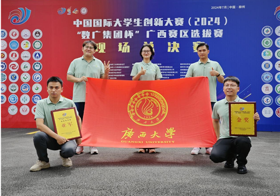 甘蔗芯动力团队在金奖排位赛中更是拿到了青年红色筑梦之旅赛道第一名的好成绩,并参与冠军争夺赛,获得了中国国际大学生创新大赛(2024)广西赛区选拔赛亚军。