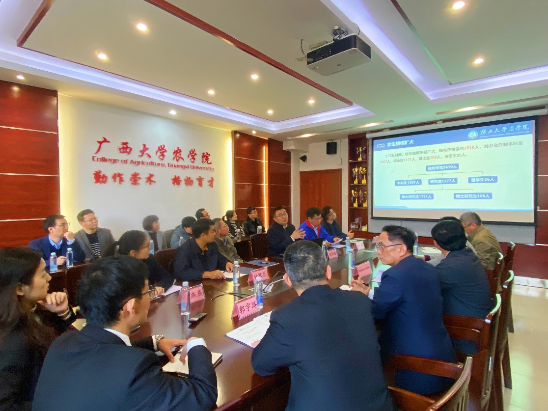 2024年12月21日,泰国清迈府梅州大学农产学院院长Phutthisun Kruekum、副院长Winai Sangkaew、国际学院助理院长Prakash Murgeppa Bhuyar一行访问了我院。学院党委书记袁涛、党委副书记甘敏思、院长张积森、国际合作与交流处副处长郭宇路、农学院副院长姚伟、副院长韦燕燕、副院长邹承武以及各系主任、副主任参加了此次座谈会。