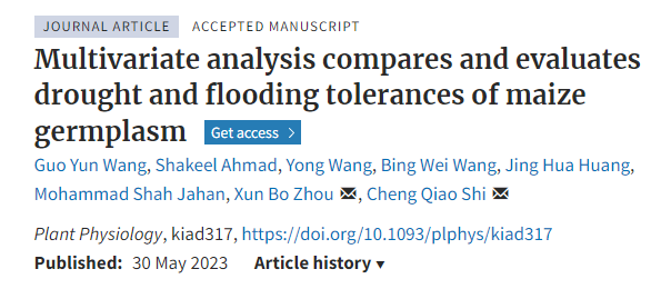 近日,广西大学作物学博士研究生王国云为第一作者在Plant Physiology在线发表了题为Multivariate analysis compares and evaluates drought and flooding tolerances of maize germplasm的研究论文。该研究提供了准确评估玉米种质的抗旱/涝性的综合分析方法,并揭示玉米种质在旱涝胁迫中的差异生理机制,为进一步研究旱涝栽培育种提供必要的理论依据。
