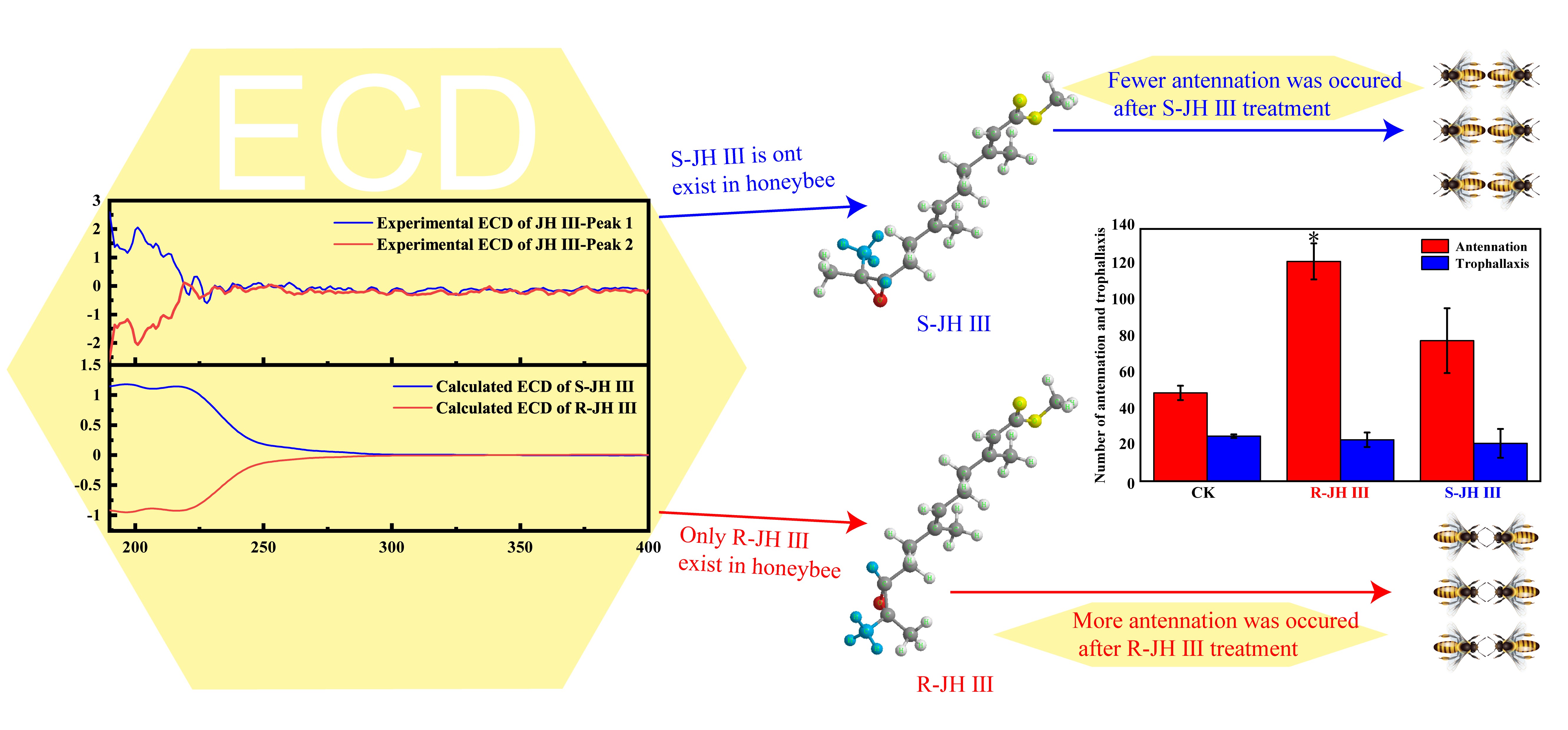 蜜蜂具有严格的社会等级分工,我们前期的研究发现,具有显著社会性、聚集行为的昆虫如蜜蜂、白蚁、蝗虫等体内普通具有更高滴度的JH III。我们以蜜蜂为研究对象,针对JH III与昆虫的社会性行为关联性进行了研究。结果表明,R-JH III对蜜蜂交互、交哺等社会行为影响明显高于S-JH III,R-JHⅢ引起受体及下游应答基因更高响应,激活激素传感和信号传导等生物学过程,R-JH III与蜜蜂建立其社会系统优势具有显著关联。研究成果首次表明大多数昆虫特异性合成R-JH III可能在其生理调控中具有显著的进化优势。成果为昆虫行为分化、聚集与行为调控、立体构型与功能差异等研究开辟新途径。248cc永利集团2020级硕士罗杰为该论文的第一作者,李雪生副教授为论文的唯一通讯作者,本研究工作得到广西农业环境与农产品安全重点实验室的支持。 (J. Agric. Food Chem. 2022, 70, 6097−6107,论文链接:https://pubs.acs.org/doi/epdf/10.1021/acs.jafc.2c00762)