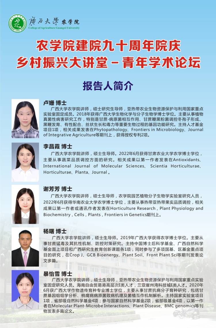 下一篇:农学院建院九十周年院院庆乡村振兴大讲堂-青年学术论坛(第六场)