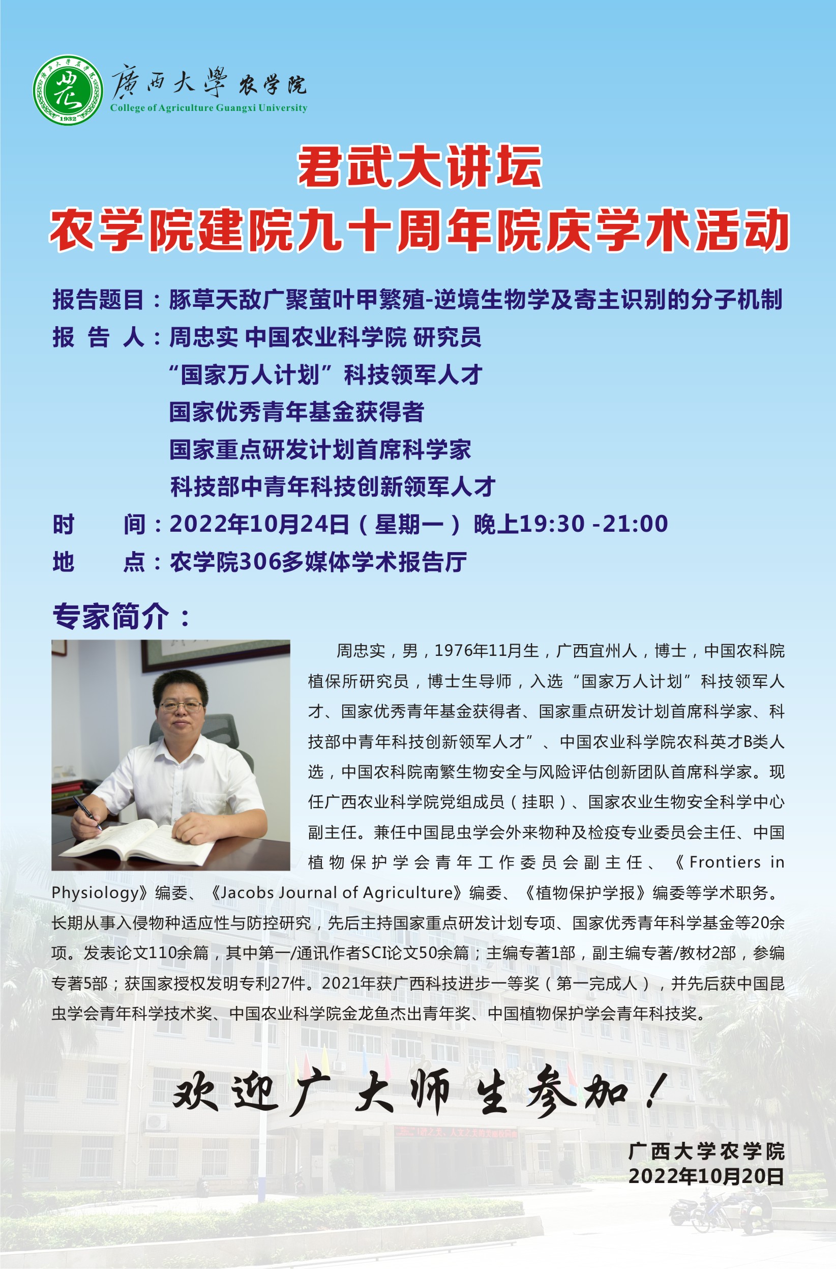 农学院建院九十周年院庆学术活动-豚草天敌广聚萤叶甲繁殖-逆境生物学及寄主识别的分子机制(周忠实)