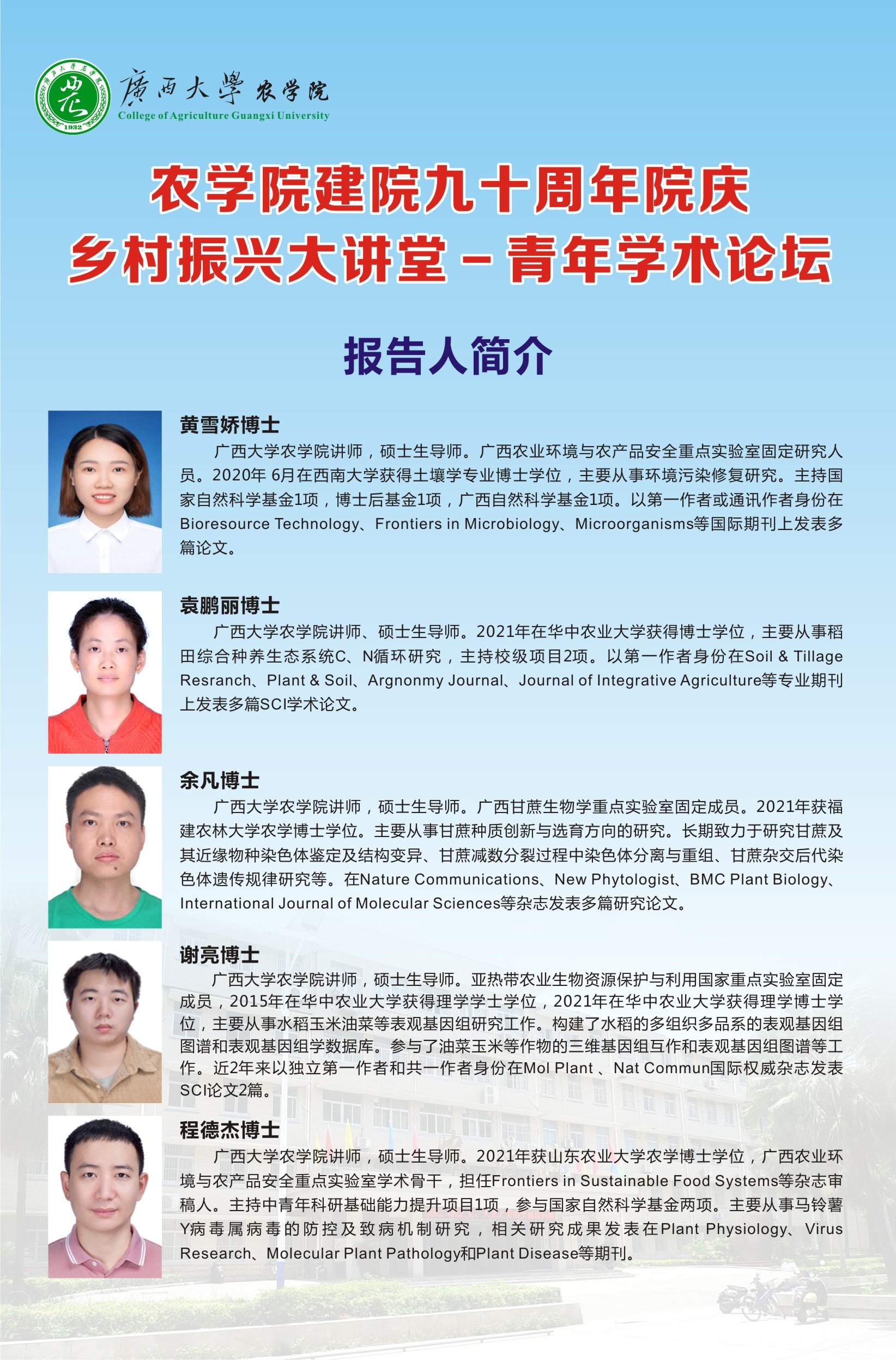 农学院建院九十周年院院庆乡村振兴大讲堂-青年学术论坛-报告人简介-