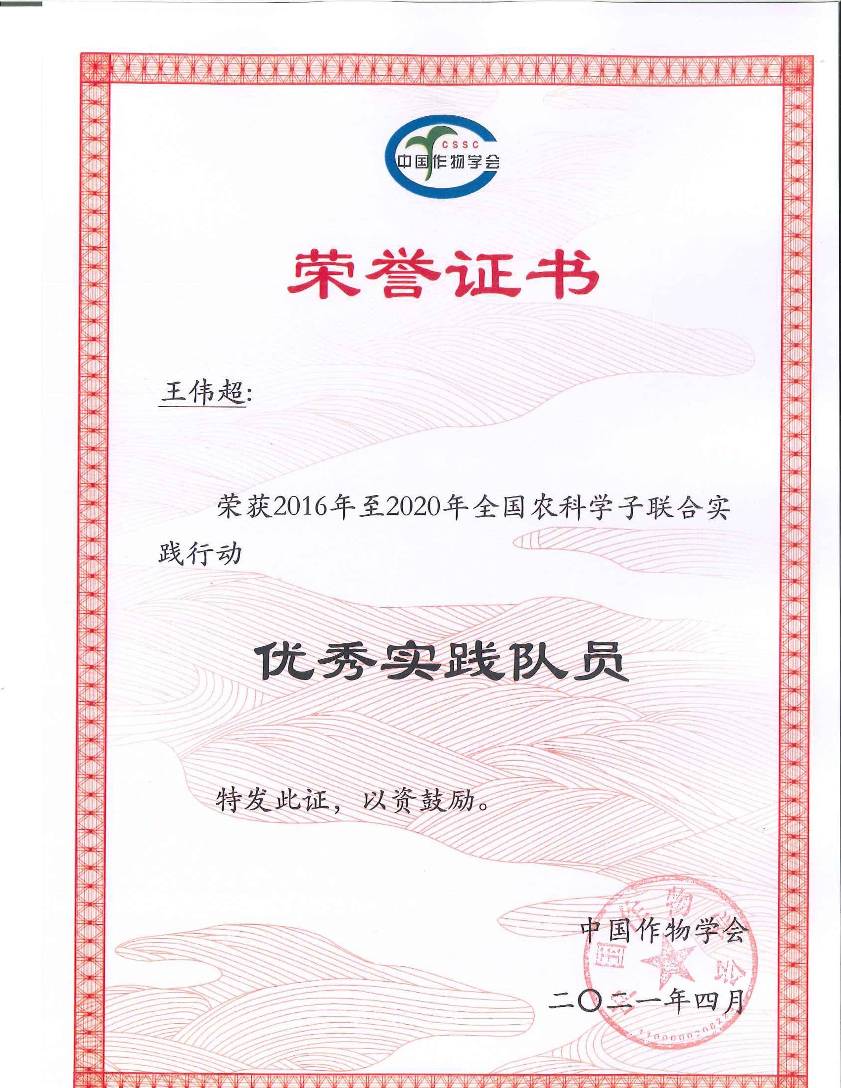 获奖证书