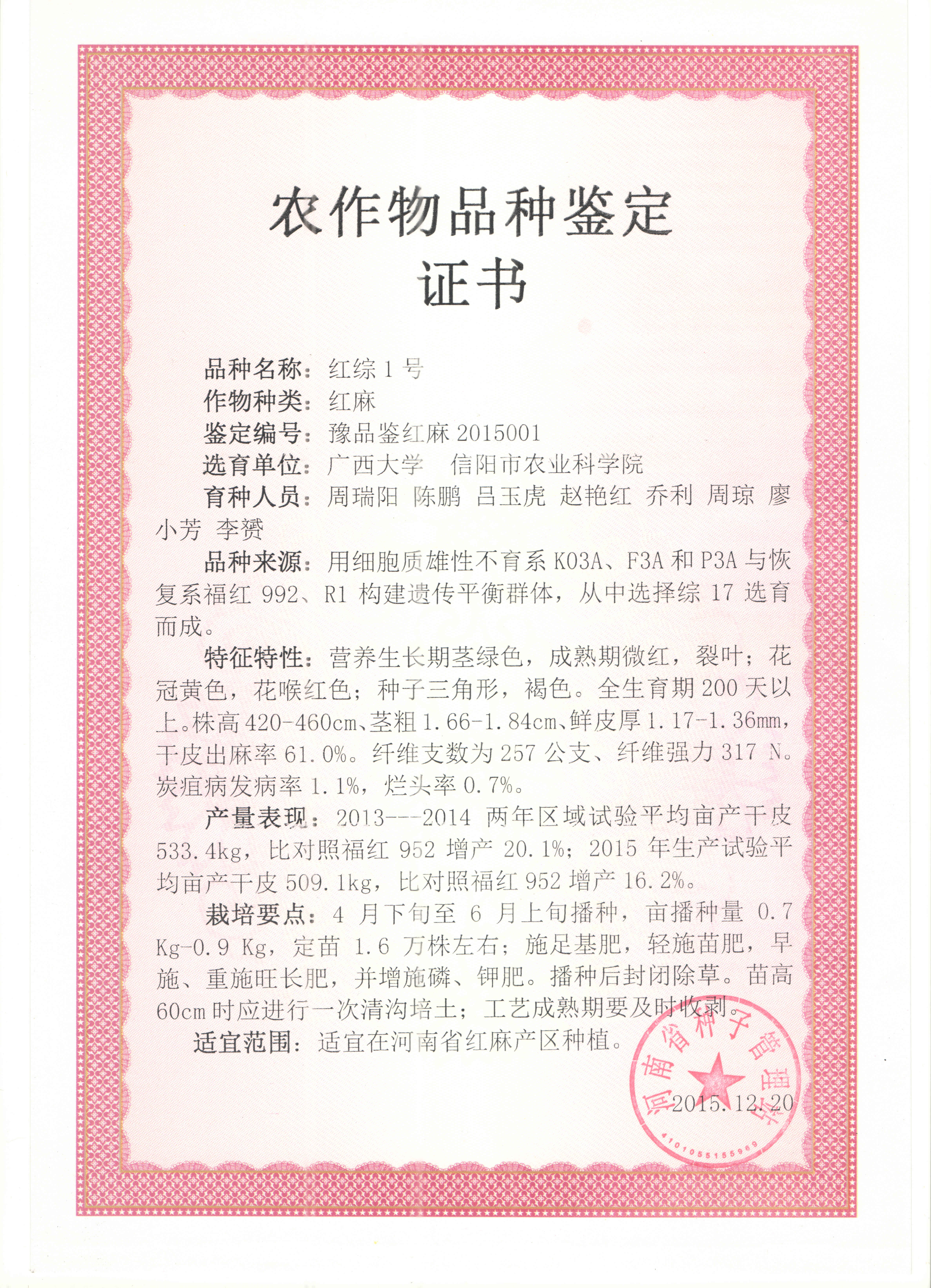 红麻——红综1号(2015、12)